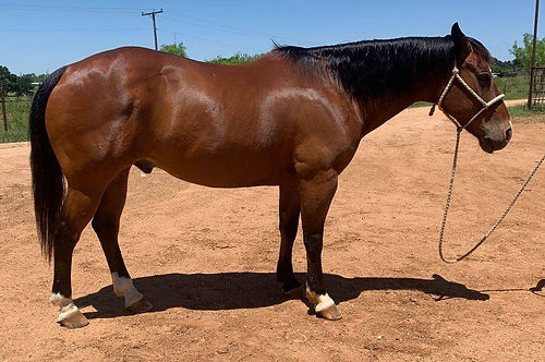 8 Year Old Bay Gelding. Doc's Hickory Bred. Started Head/Heel/Calf Horse. He is gentle, really broke and has a big motor. He has been used on the ranch and has been to many ranch rodeos and sortings.